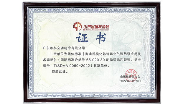 EK空調參與起草《畜禽規(guī)?;B(yǎng)殖場空氣源熱泵應用技術規(guī)范》2022-09-01近日,經山東省畜牧協(xié)會批準,團體標準《畜禽規(guī)模化養(yǎng)殖場空氣源熱泵應用技術規(guī)范》正式發(fā)布并實施。廣東歐科空調制冷有限公司(簡稱:EK空調)作為起草單位,參與了該標準的制定。