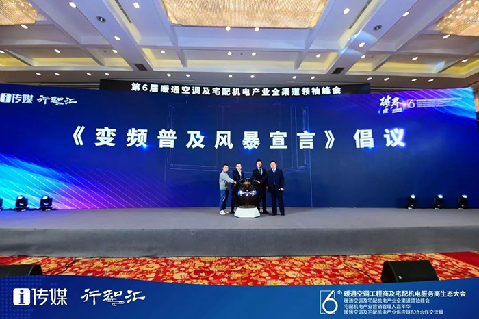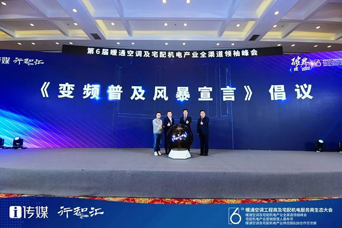 基于“雙碳”政策目標(biāo)、暖通空調(diào)行業(yè)“節(jié)能減排”重任、變頻技術(shù)的巨大市場空間等社會(huì)現(xiàn)狀,EK依托自身在“變頻”技術(shù)上的深厚積累,以及對“雙碳”政策的積極響應(yīng),決定向全行業(yè)發(fā)起變頻模塊普及倡議,呼吁并引導(dǎo)行業(yè)邁入模塊機(jī)全變頻時(shí)代。EK空調(diào)市場營銷總監(jiān)王健作為代表,上臺(tái)宣讀了EK《變頻普及風(fēng)暴倡議》。