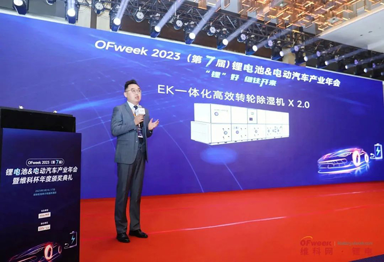 3月16日,OFweek 2023(第七屆)鋰電池&電動汽車產(chǎn)業(yè)年會暨維科杯·2022鋰電行業(yè)年度評選頒獎典禮在深圳拉開帷幕。EK作為綠色鋰電工廠環(huán)境控制解決方案領(lǐng)先者,攜先進鋰電智造濕度環(huán)境節(jié)能解決方案亮相,并在現(xiàn)場發(fā)布重磅新品:一體化高效轉(zhuǎn)輪除濕機 X2.0。