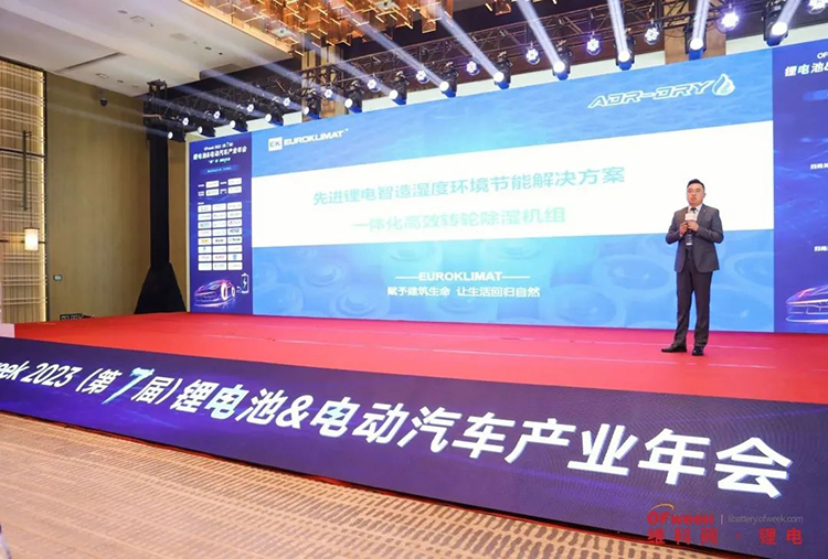 本次年會,EK IECD工業(yè)環(huán)境控制事業(yè)部總監(jiān)王健以《先進鋰電智造濕度環(huán)境節(jié)能解決方案》為主題發(fā)表演講,和大家詳細介紹了EK一體化高效轉(zhuǎn)輪除濕機 X2.0、EK云智慧高效集成冷站等節(jié)能方案。