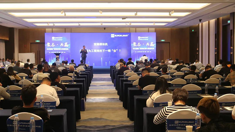 會上,EK空調(diào)市場營銷總監(jiān)王健通過具體應(yīng)用案例和大家分享了EK變頻模塊機相比常規(guī)模塊機的優(yōu)勢,以及在商用、醫(yī)療、酒店、工業(yè)等領(lǐng)域的最優(yōu)解決方案。在碳達峰、碳中和政策下,擁有全變頻技術(shù)、超寬運行范圍、智慧云系統(tǒng)、IPLV遠(yuǎn)超國家一級能效的變頻模塊機,將成為暖通空調(diào)工程商的下一桶“金”,未來可期!