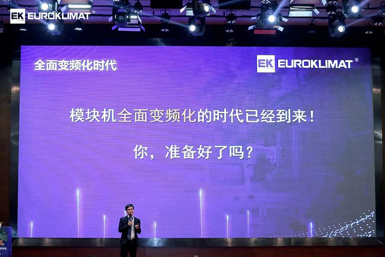 EK空調(diào)中國(guó)區(qū)董事長(zhǎng)兼總裁李鵬舉則介紹了國(guó)家“雙碳”政策下,EK空調(diào)推出的變頻模塊機(jī)、云智慧高效集成冷站等一系列高效節(jié)能產(chǎn)品和EK-AloT智慧云系統(tǒng)。李總表示, EK空調(diào)早在兩年前已經(jīng)開(kāi)始部署AloT智慧云系統(tǒng),并通過(guò)降低產(chǎn)品價(jià)格、提高產(chǎn)品能效、縮短產(chǎn)品工程周期等方式為經(jīng)銷商客戶提供最具市場(chǎng)競(jìng)爭(zhēng)力、性價(jià)比最高、符合國(guó)家相關(guān)政策的標(biāo)準(zhǔn)化、信息化產(chǎn)品。在新能源電池、數(shù)據(jù)中心、高效機(jī)房改造等項(xiàng)目中,EK可提供各種有利“武器”,為客戶持續(xù)創(chuàng)造價(jià)值!