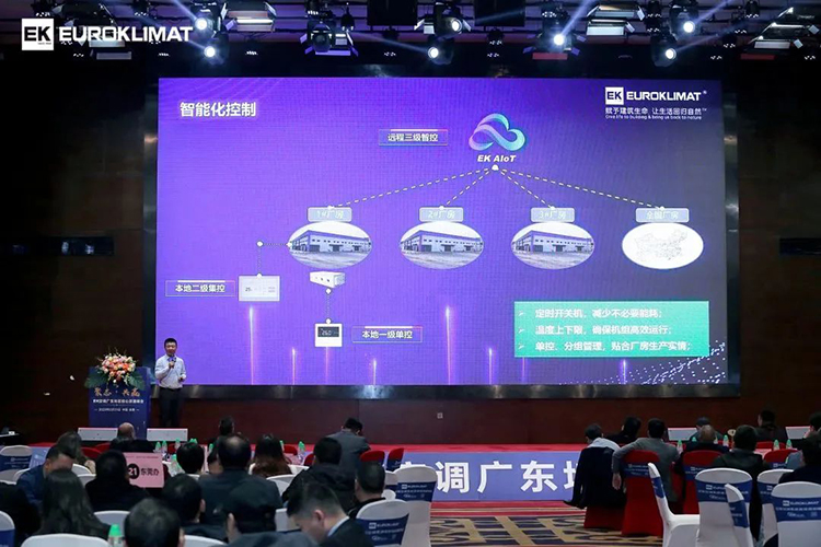 會(huì)議現(xiàn)場(chǎng),EK空調(diào)產(chǎn)品經(jīng)理就云智慧高效集成冷站、工業(yè)大多聯(lián)、變頻模塊機(jī)等EK核心產(chǎn)品的優(yōu)勢(shì)特點(diǎn)、應(yīng)用場(chǎng)景、應(yīng)用案例進(jìn)行了詳細(xì)介紹。