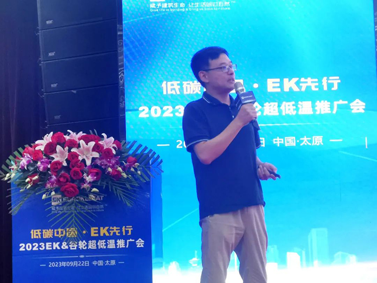會(huì)議開始,EK空調(diào)晉冀區(qū)區(qū)總魏志剛首先和現(xiàn)場經(jīng)銷商介紹了近幾年EK低溫模塊在山西太原的發(fā)展和應(yīng)用。在“雙碳”戰(zhàn)略目標(biāo)不斷推進(jìn)的當(dāng)下,EK緊抓市場熱點(diǎn),堅(jiān)持科技創(chuàng)新,推出-38℃超低溫?zé)岜玫犬a(chǎn)品,為廣大經(jīng)銷商客戶在低溫產(chǎn)品市場藍(lán)海中提供更優(yōu)選擇。