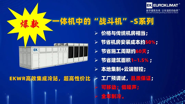 而號稱一體機(jī)中的“戰(zhàn)斗機(jī)”——S系列云智慧高效集成冷站,該系列集成冷站最大的優(yōu)勢就是采用EK自制冷卻塔,超高性價(jià)比,價(jià)格與傳統(tǒng)機(jī)房的造價(jià)相當(dāng),安裝成本節(jié)省約50%,且冷卻塔與主機(jī)段采用一體化設(shè)計(jì),是真正意義上的一體機(jī)。