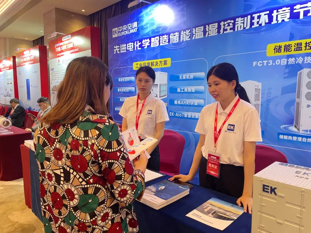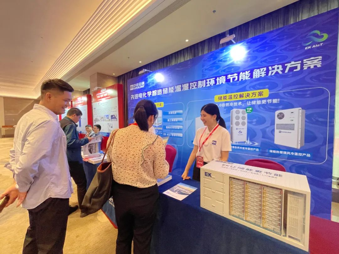 年會現(xiàn)場,EK設(shè)立專屬展位,專業(yè)工作人員向現(xiàn)場嘉賓介紹應用于儲能行業(yè)的產(chǎn)品和解決方案,與現(xiàn)場嘉賓進行深入交流。EK儲能熱管理自然冷液冷溫控、儲能熱管理液冷溫控、儲能熱管理風冷溫控等產(chǎn)品,產(chǎn)品系列齊全,在-40-55℃室外環(huán)溫下穩(wěn)定運行,可實現(xiàn)全場景適應,根據(jù)客戶防護、防腐等級要求進行定制,應用于極端氣候、高海拔、鹽霧腐蝕等惡劣工況,保障儲能柜安全穩(wěn)定運行;同時搭載EK-AloT智慧云平臺,對儲能溫控產(chǎn)品全生命周期進行云端賦能,實現(xiàn)云端智能控制、遠程運維、線上協(xié)同、運行優(yōu)化、節(jié)能增效。