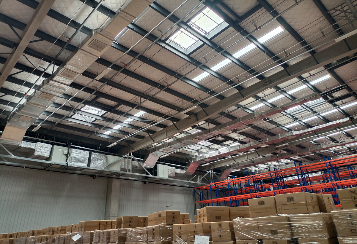 詳細(xì)了解客戶需求和現(xiàn)場(chǎng)勘察后,結(jié)合倉(cāng)庫(kù)應(yīng)用特點(diǎn),為客戶制定了「EKRV-E全直流變頻機(jī)組 EKDB-C1直膨管道式機(jī)組」工業(yè)多聯(lián)中央空調(diào)解決方案。