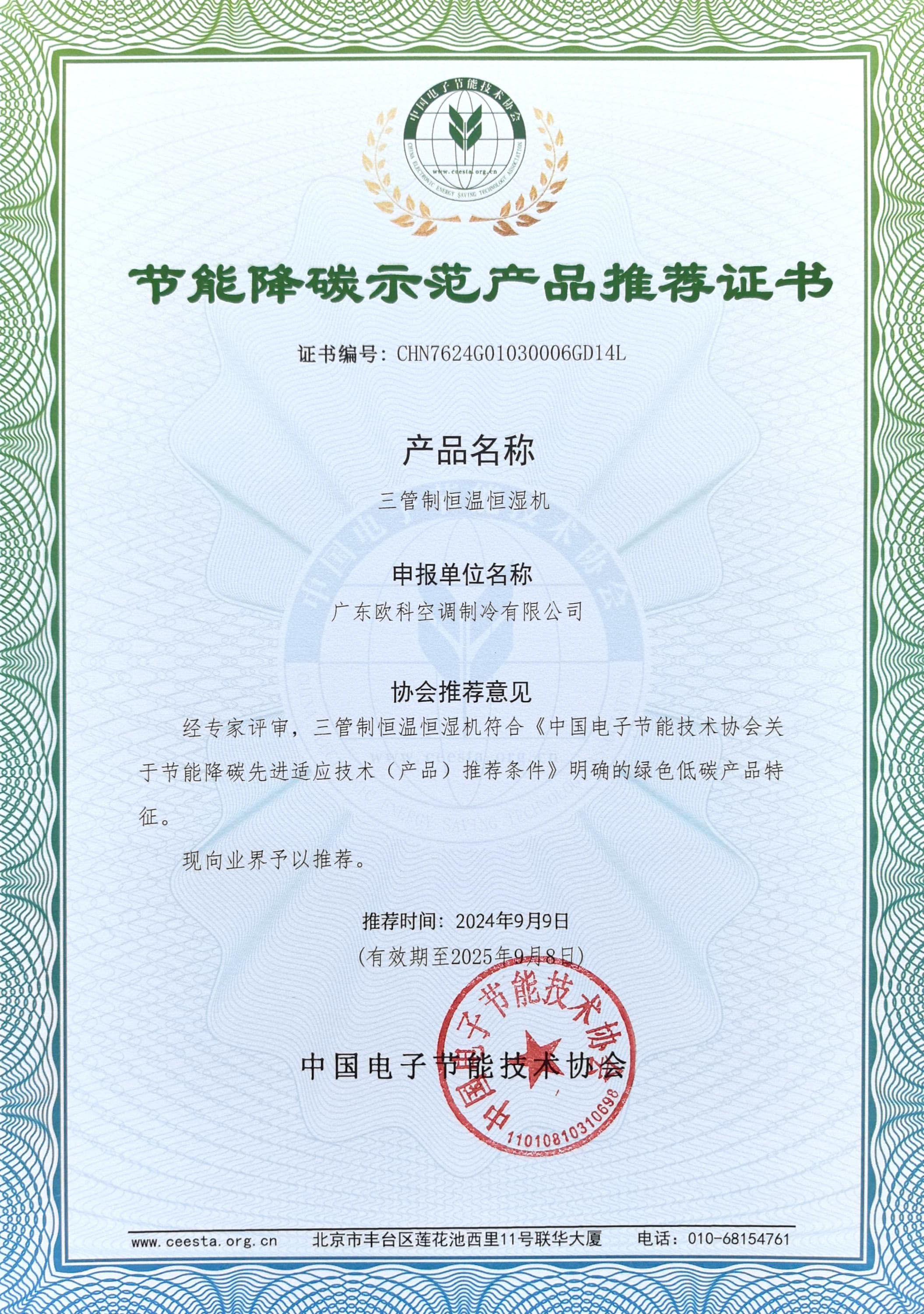 喜訊 | EK工業(yè)空調(diào)多款產(chǎn)品獲“節(jié)能降碳示范產(chǎn)品推薦證書(shū)”!