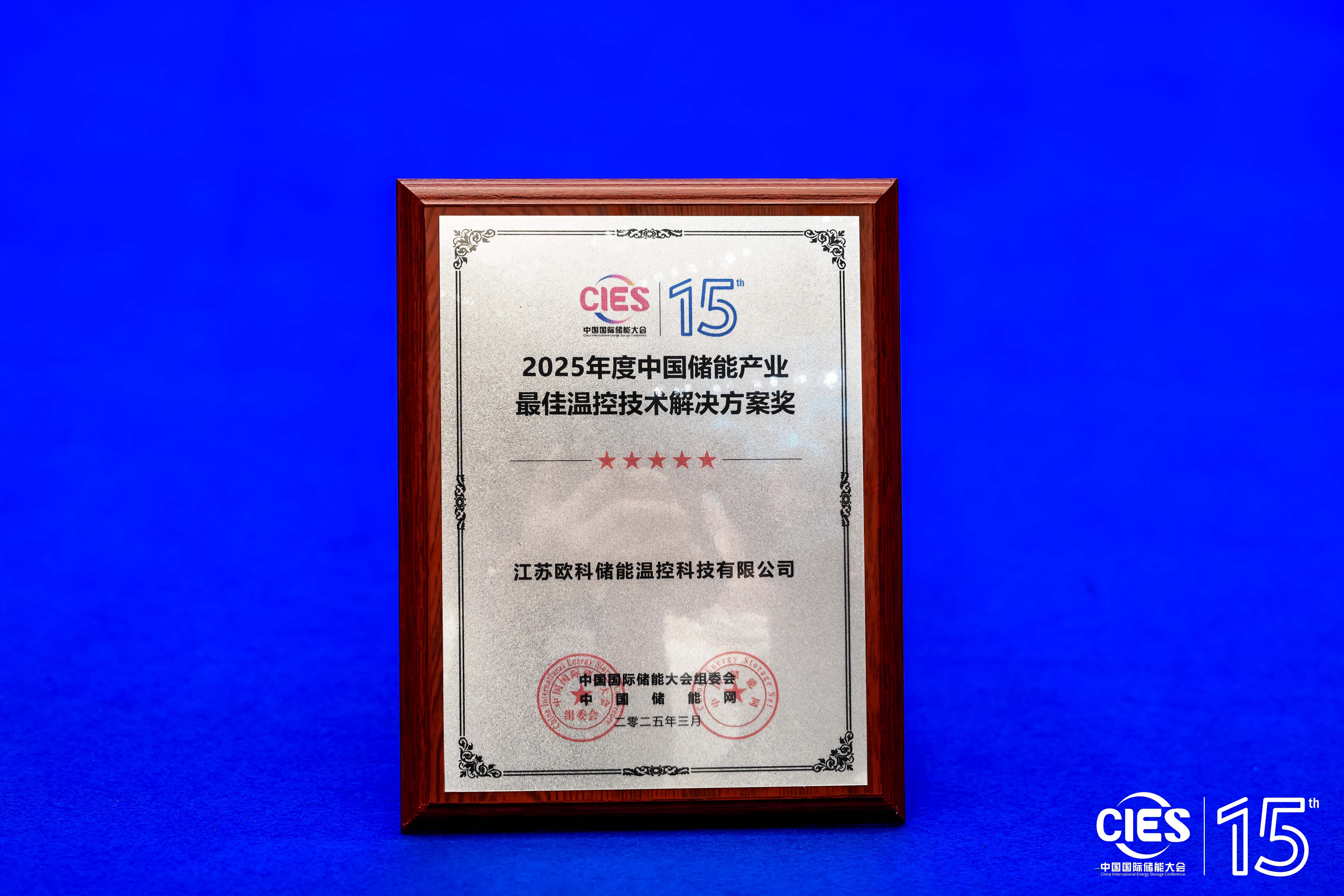 2025年3月23日-26日,CIES2025第十五屆中國國際儲能大會暨展覽會在杭州隆重舉行。在同期舉辦的“2025中國儲能產(chǎn)業(yè)最具影響力系列獎項(xiàng)”頒獎盛典上,EK儲能溫控憑借領(lǐng)先的儲能溫控技術(shù)實(shí)力,強(qiáng)勢斬獲“2025年度中國儲能產(chǎn)業(yè)最佳溫控技術(shù)解決方案獎”,再次彰顯行業(yè)標(biāo)桿地位。