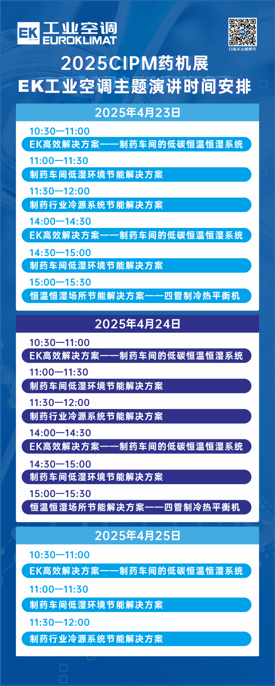 展會熱度持續(xù)攀升,精彩遠(yuǎn)不止于此!本屆藥機(jī)展將持續(xù)到4月25日,EK工業(yè)空調(diào)誠邀您蒞臨國際三館 S3-59 展位,共探制藥行業(yè)節(jié)能降耗、綠色發(fā)展路徑!