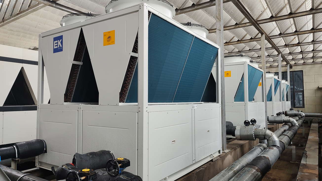 項目采用11臺EK變頻空氣源熱泵機組,替換原有螺桿機組設(shè)備。因展館半數(shù)區(qū)域調(diào)整使用功能,需實現(xiàn)冬季全天供暖 —— 而原螺桿機組僅能滿足冬季白天供暖需求,無法適配新的使用場景。新系統(tǒng)搭載先進變頻渦旋壓縮技術(shù),搭配 EVI 噴氣增焓技術(shù),大幅提升系統(tǒng)整體能效;同時具備低溫強熱與不停機除霜功能,可確保冬季展廳內(nèi)溫度穩(wěn)定舒適。改造工程在不影響展館正常運營的前提下高效推進,新系統(tǒng)在保持與原有管道兼容性的基礎(chǔ)上,還有效降低運行噪音,為參觀者營造出安靜宜人的環(huán)境。