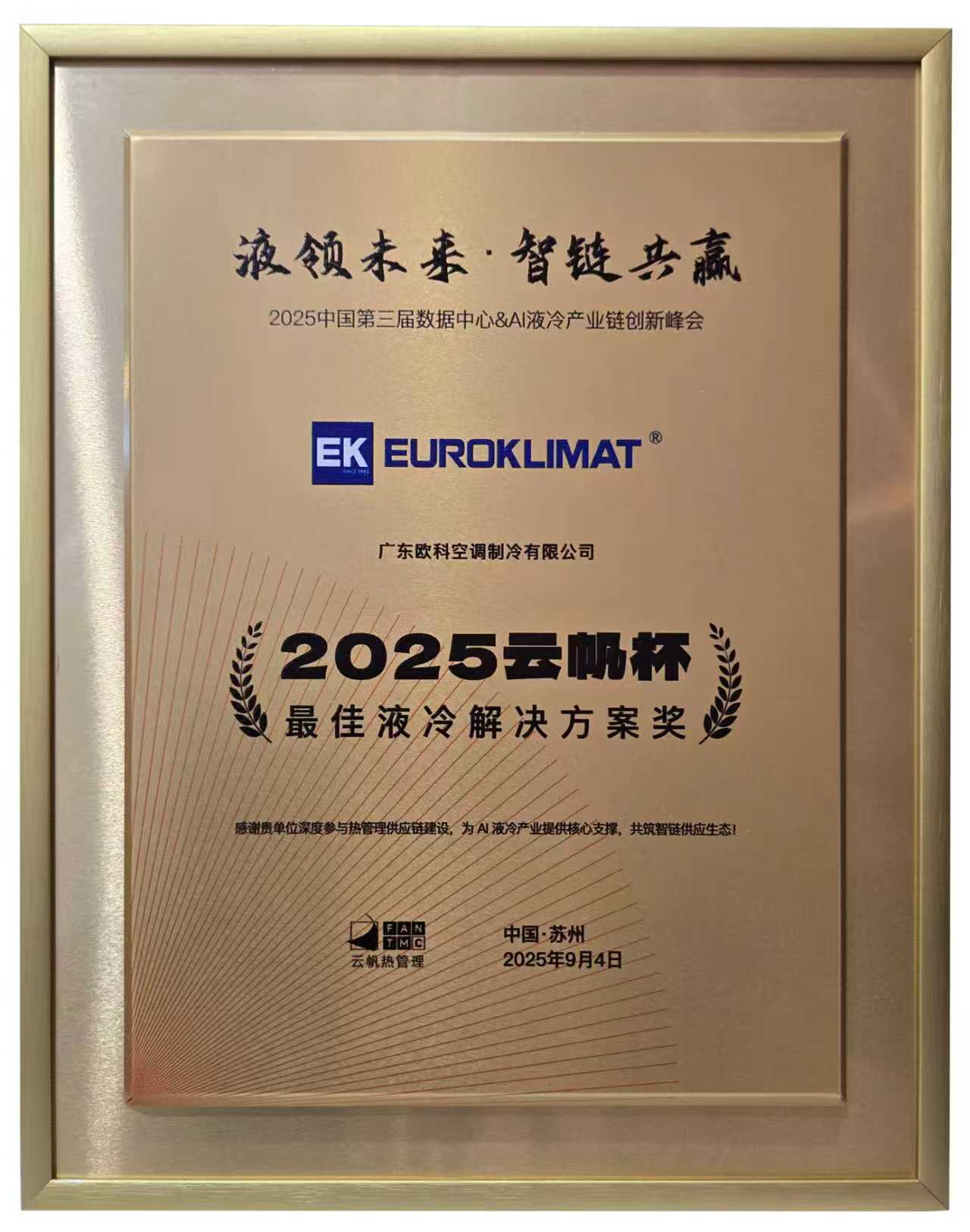 在9月4日上午舉行的頒獎(jiǎng)典禮上,EK憑借在液冷技術(shù)領(lǐng)域的創(chuàng)新突破和卓越的產(chǎn)品解決方案,榮獲"云帆杯2025年度最佳液冷解決方案獎(jiǎng)"。